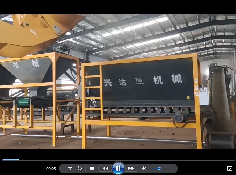 濟南有機肥生產線中鏟車料倉設備正在有機肥設備廠家進行裝車